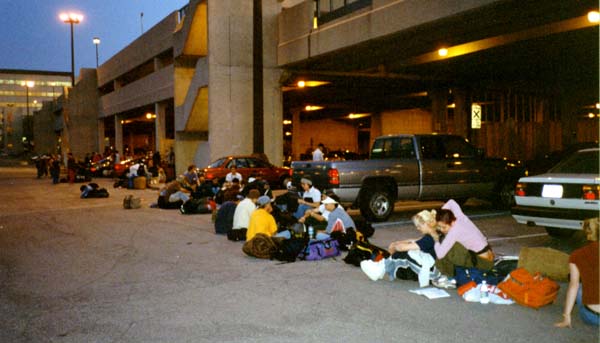 Waiting in the LONG line for the shuttle bus to WEMF.