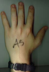 A5 was my number to get on the shuttle bus back to Toronto, because they tagged us like cattle since there was poor transportation to and from Christian Island where so many people were crammed in. |