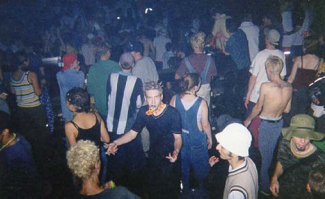 Hullabaloo - Electric Dreams, took place at the Newz nightclub in Toronto. Shitty venue, good line-up. In our group for this party we had [Dan], andr3w, Chris ({eLeVEn}), Joel (the piece of shit) , Lonnie (SilverStar), Amy, Sara (Saffron), Kristine (PinkStar), and Constance (funtrip), Scott B. (nevesis), and Dave "Nice Ass" (Goatpiss). We all took the first shuttle bus from Union Station and took a nice long bumpy ride to the shitty venue. We arrived to see a nice long line of a lot of people who were there already. They let the first 1200 people in an hour later then they were supposed to and made the rest (a couple thousand I think) wait 'til about 1am, when they opened up the rest of the club. If you were outside you were freezing your ass off needlessly. If you were inside you were like a sardine. It was crammed with people until the whole place was opened up at 1am. Once the big happy hardcore room opened up the venue was a much nicer place to be.